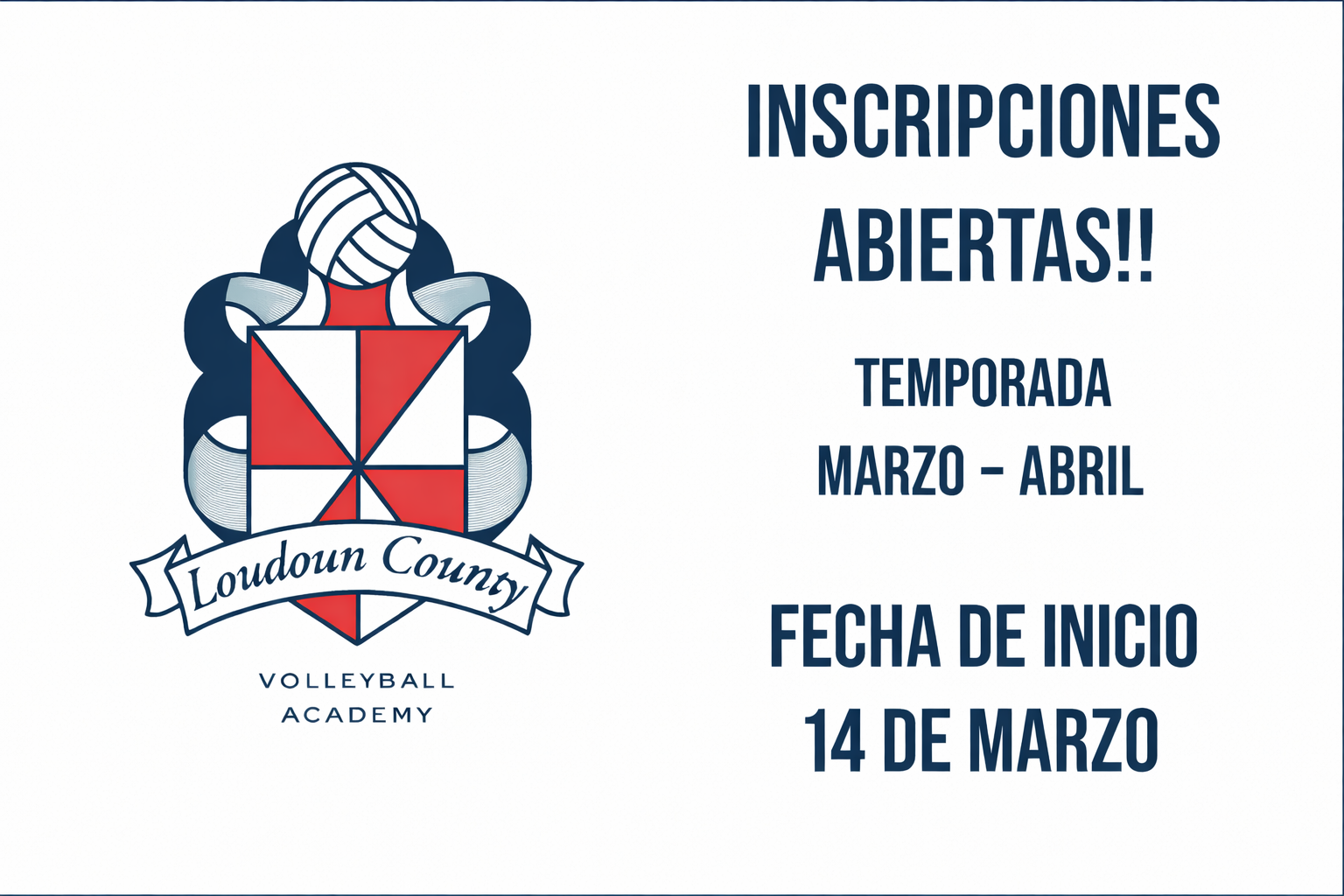 La Academia Loudoun County les da la más cordial binvenida a las clases de vóley temporada Marzo - Abril. Hemos diseñado un programa de acuerdo a cada nivel, donde el estudiante podrá aplicar los conocimientos teóricos y prácticos. Aplicando métodos y técnicas innovadoras a cada fundamento, con el fin de lograr la máxima eficiencia